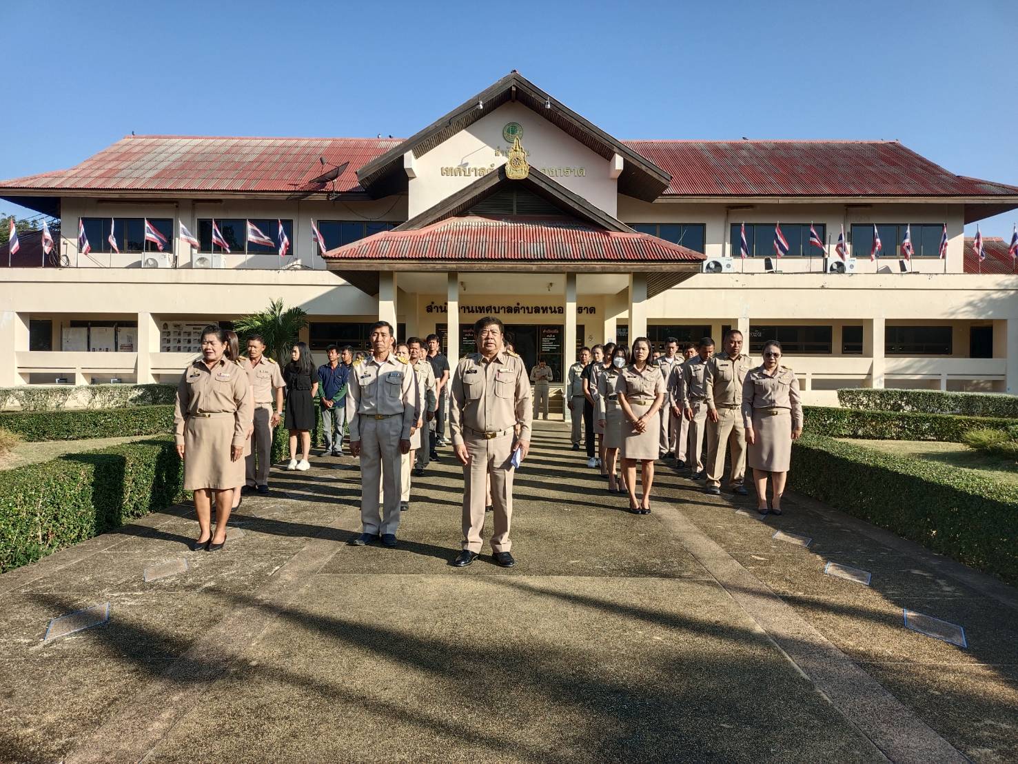 ดำเนินการรดน้ำต้นไม้ บริเวณรอบสำนักงานเทศบาลตำบลหน...