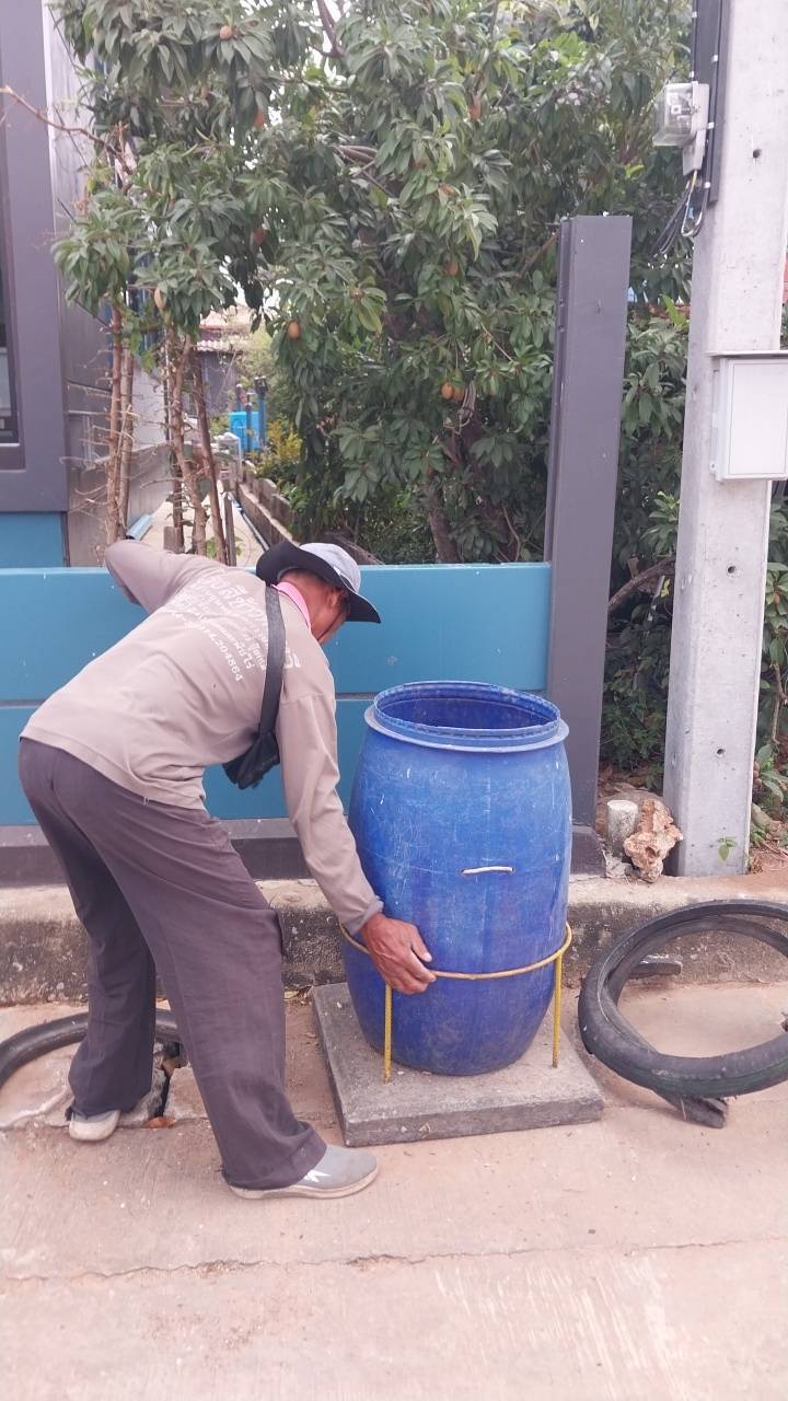 ดำเนินการวางฐานถังขยะ บริเวณหมู่ที่ 15