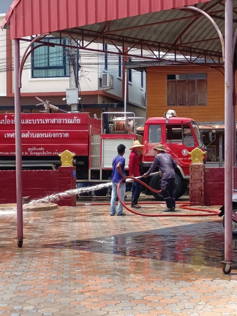 วันที่ 15 เมษายน 2569 เจ้าหน้าที่งานป้องกันและบรรเทาสาธารณภัย สำนักปลัดเทศบาล เทศบาลตำบลหนองกราด ได้ดำเนินการดังนี้.-