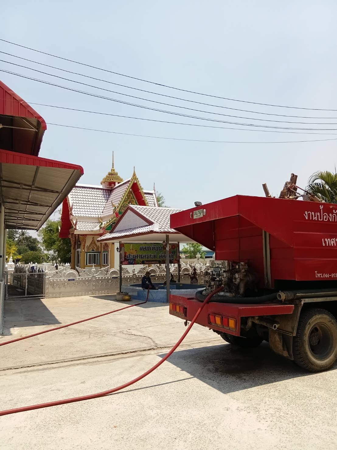ดำเนินการส่งน้ำให้กับประชาชน ล้างถนนบริเวณจัดงานวั...