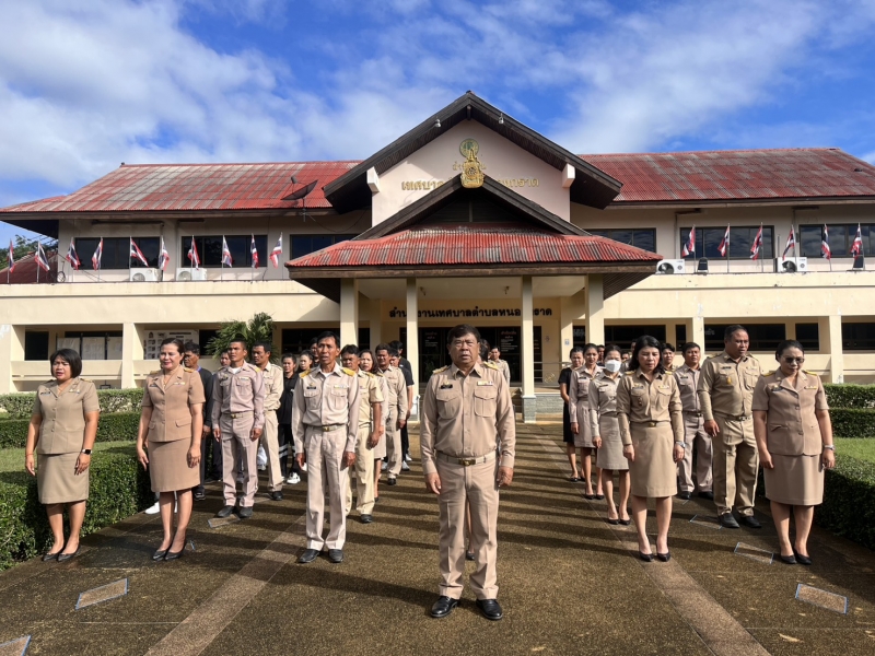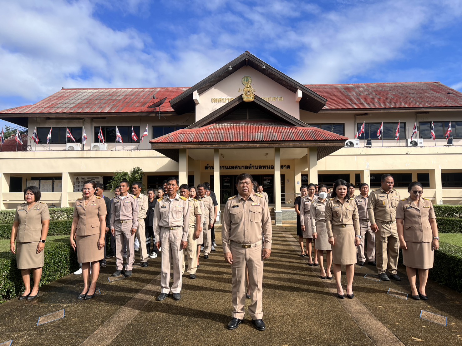 วันจันทร์ที่ 3 พฤศจิกายน 2568 เทศบาลตำบลหนองกราด นำโดยนายวีระชัย โต้งสูงเนิน นายกเทศมนตรีตำบลหนองกราด พร้อมด้วยคณะผู้บริหาร นายฐานะ มาศขุนทด ปลัดเทศบาลตำบลหนองกราด และพนักงานเทศบาล ลูกจ้างของเทศบาลตำบลหนองกราด ร่วมกิจกรรมเคารพธงชาติ ทุกวันจันทร์ เวลา 08.30 น. เพื่อเป็นการเสริมสร้างวัฒนธรรมและค่านิยมสุจริตในการปฏิบัติงาน ให้มีคุณธรรมจริยธรรม ความโปร่งใส ป้องกันการทุจริตคอร์รัปชั่น และปลูกฝัง รักชาติ ศาสนา พระมหากษัตริย์ ระเบียบวินัยในองค์กร ณ หน้าสำนักงานเทศบาลตำบลหนองกราด