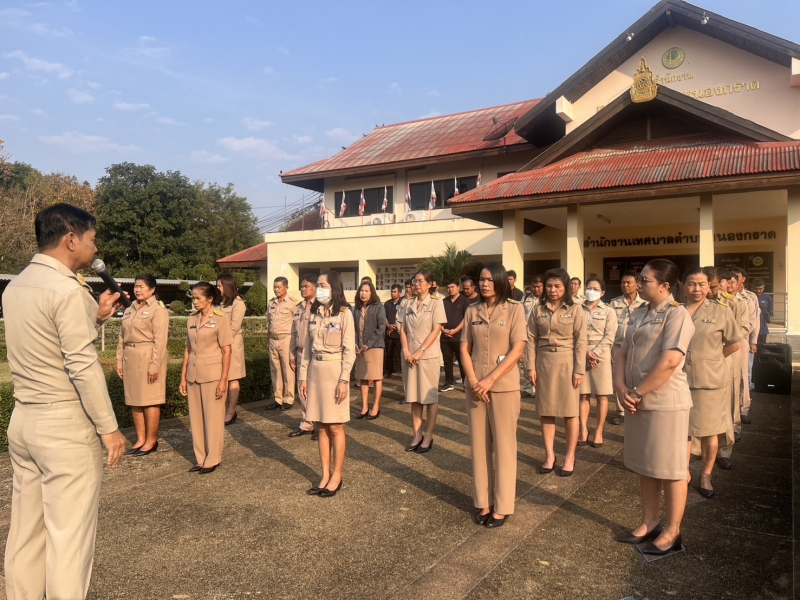 วันจันทร์ที่ 19 มกราคม 2569 เวลา 08.30 น. คณะผู้บริหาร พร้อมด้วยนายฐานะ มาศขุนทด ปลัดเทศบาลตำบลหนองกราด พนักงานเทศบาล และลูกจ้างของเทศบาลตำบลหนองกราด ร่วมกิจกรรมเคารพธงชาติ ทุกวันจันทร์ เพื่อเป็นการเสริมสร้างวัฒนธรรมและค่านิยมสุจริตในการปฏิบัติงาน ให้มีคุณธรรมจริยธรรม ความโปร่งใส ป้องกันการทุจริตคอร์รัปชั่น และปลูกฝัง รักชาติ ศาสนา พระมหากษัตริย์ ระเบียบวินัยในองค์กร ณ หน้าสำนักงานเทศบาลตำบลหนองกราด