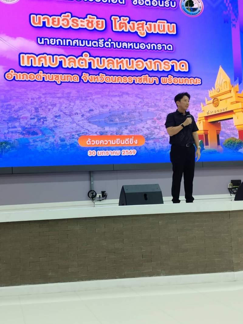 วันที่ 27 มกราคม 2569 เวลา 09.30 น. นายวีระชัย โต้งสูงเนิน นายกเทศมนตรีตำบลหนองกราด เป็นประธานเปิดโครงการอบรมและศึกษาดูงาน เพื่อเสริมสร้างทักษะชีวิตตามแนวคิดเศรษฐกิจพอเพียง ประจำปีงบประมาณ พ.ศ. 2569 ระหว่างวันที่ 27-30 มกราคม 2569 ณ ่เทศบาลตำบลหนองกราด และศึกษาดูงานจังหวัดนครพนม จังหวัดมุกดาหาร และจังหวัดร้อยเอ็ด โดยมี คณะผู้บริหาร สมาชิกสภาเทศบาลตำบลหนองกราด ปลัดเทศบาลตำบลหนองกราด ผู้อำนวยการกองทุกกอง หัวหน้าฝ่ายทุกฝ่าย พนักงานเทศบาล ลูกจ้างของเทศบาลตำบลหนองกราด และ ผู้นำท้องที่ คณะกรรมการหมู่บ้าน ,ประธาน อสม ,สมาชิก อสม. , กลุ่มอาชีพต่างๆ ในเขตเทศบาลตำบลหนองกราด ณ ห้องประชุมสำนักงานเทศบาลตำบลหนองกราด