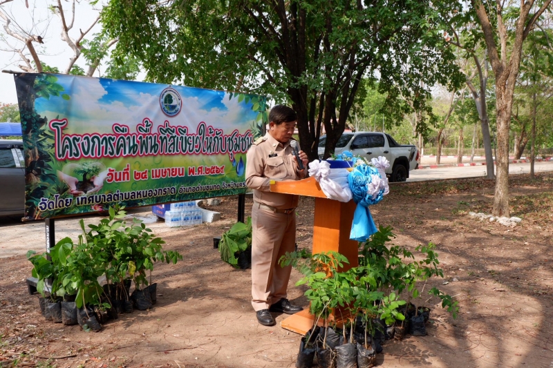 วันที่ 24 เมษายน 2569 เวลา10.00 น. เทศบาลตำบลหนองกราด ได้ดำเนินการจัดโครงการคืนพื้นที่สีเขียวให้กับชุมชน เนื่องในงาน “วันเทศบาล” ประจำปี 2569 โดยมี นายวีระชัย โต้งสูงเนิน นายกเทศมนตรีตำบลหนองกราด พร้อมด้วย คณะผู้บริหาร สมาชิกสภาเทศบาลตำบลหนองกราด นายฐานะ มาศขุนทด ปลัดเทศบาลตำบลหนองกราด หัวหน้าสำนักปลัดเทศบาล ผู้อำนวยการกองทุกกอง หัวหน้าฝ่ายทุกฝ่าย พนักงานเทศบาล ลูกจ้างประจำ พนักงานจ้างตามภารกิจ พนักงานจ้างทั่วไป พนักงานจ้างเหมาบริการของเทศบาลตำบลหนองกราด , ผู้อำนวยการโรงเรียนหนองกราดวัฒนา รองผู้อำนวยการโรงเรียน คณะครูโรงเรียนหนองกราดวัฒนา กำนัน ผู้ใหญ่บ้าน ที่ปรึกษาภาคประชาชน เข้าร่วมกิจกรรมฯ ณ ป่าไม้ชุมชน ติดกับสำนักงานเทศบาลตำบลหนองกราด อำเภอด่านขุนทด จังหวัดนครราชสีมา