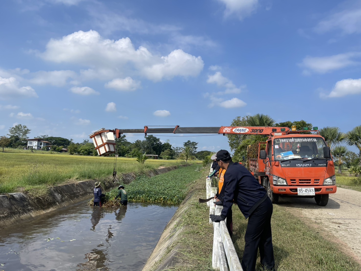 วันพุธที่ 12 พฤศจิกายน 2568 เวลา 09.00 น. เทศบาลตำบลหนองกราด นำโดย คณะผู้บริหาร พร้อมด้วยสมาชิกสภาเทศบาล นายฐานะ มาศขุนทด ปลัดเทศบาลตำบลหนองกราด เจ้าหน้าที่งานป้องกันและบรรเทาสาธารณภัย สำนักปลัดเทศบาล เจ้าหน้าที่กองสาธารณสุขและสิ่งแวดล้อม และเจ้าหน้าที่กองช่าง ได้ร่วมกันดำเนินการกำจัดวัชพืชบริเวณคลองส่งน้ำเข้าบึงหนองหัวช้าง หมู่ที่ 3 ตำบลหนองกราด อำเภอด่านขุนทด จังหวัดนครราชสีมา