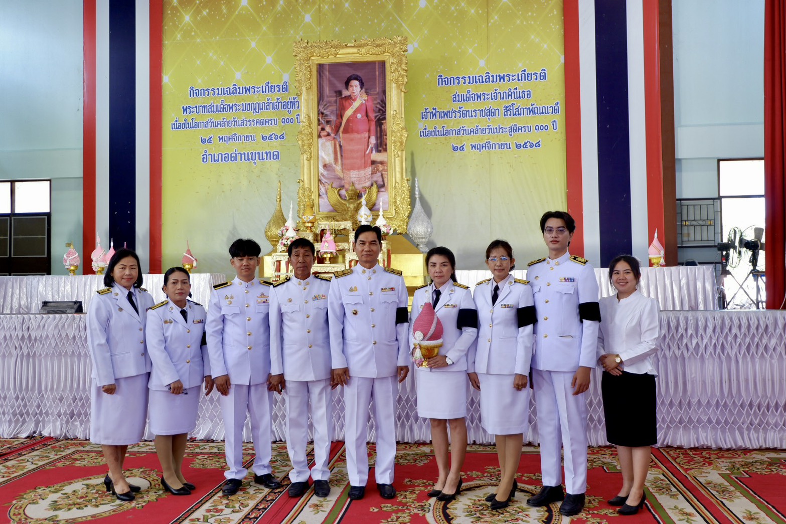 วันจันทร์ที่ 24 พฤศจิกายน 2568 เวลา 06.30 น. นายประจักษ์ หงษ์ศรีอาภัย รองนายกเทศมนตรีตำบลหนองกราด พร้อมด้วยนายฐานะ มาศขุนทด ปลัดเทศบาลตำบลหนองกราดพนักงานเทศบาล ลูกจ้างประจำ พนักงานจ้าง และจ้างเหมาบริการ เทศบาลตำบลหนองกราด ได้เข้าร่วมพิธีเจริญพระพุทธมนต์และทำบุญตักบาตรข้าวสารอาหารแห้ง ถวายพระราชกุศล และพิธีวางพานพุ่มดอกไม้ถวายสักการะสมเด็จพระเจ้าภคินีเธอ เจ้าฟ้าเพชรรัตน์ราชสุดา สิริโสภาพันณณวดี ณ หอประชุมอำเภอด่านขุนทด จังหวัดนครราชสีมา