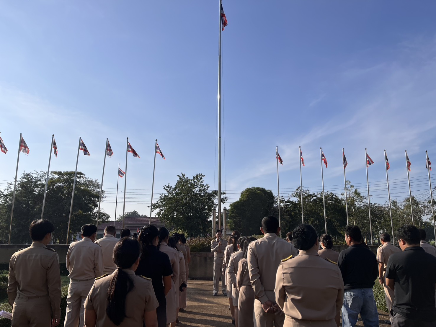 วันจันทร์ที่ 29 ธันวาคม 2568 เวลา 08.30 น. คณะผู้บริหาร พร้อมด้วยนายฐานะ มาศขุนทด ปลัดเทศบาลตำบลหนองกราด พนักงานเทศบาล และลูกจ้างของเทศบาลตำบลหนองกราด ร่วมกิจกรรมเคารพธงชาติ ทุกวันจันทร์ เพื่อเป็นการเสริมสร้างวัฒนธรรมและค่านิยมสุจริตในการปฏิบัติงาน ให้มีคุณธรรมจริยธรรม ความโปร่งใส ป้องกันการทุจริตคอร์รัปชั่น และปลูกฝัง รักชาติ ศาสนา พระมหากษัตริย์ ระเบียบวินัยในองค์กร ณ หน้าสำนักงานเทศบาลตำบลหนองกราด
