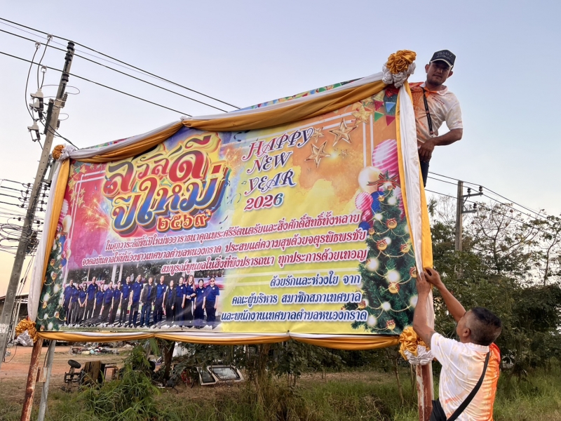 วันอังคารที่ 30 ธันวาคม 2568 เวลา 17.00 น. เจ้าหน้าที่สำนักปลัดเทศบาล และเจ้าหน้าที่กองช่าง ได้ดำเนินการติดป้ายไว้อาลัยพระพันปี และป้ายสวัสดีปีใหม่ 2569 ในเขตเทศบาลตำบลหนองกราด