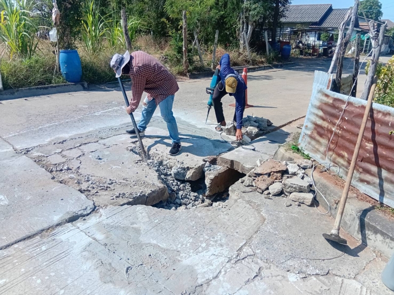 ดำเนินการซ่อมแซมถนนที่ชำรุด หมู่ที่ 13 บ้านหนองยายหอม ตำบลหนองกราด