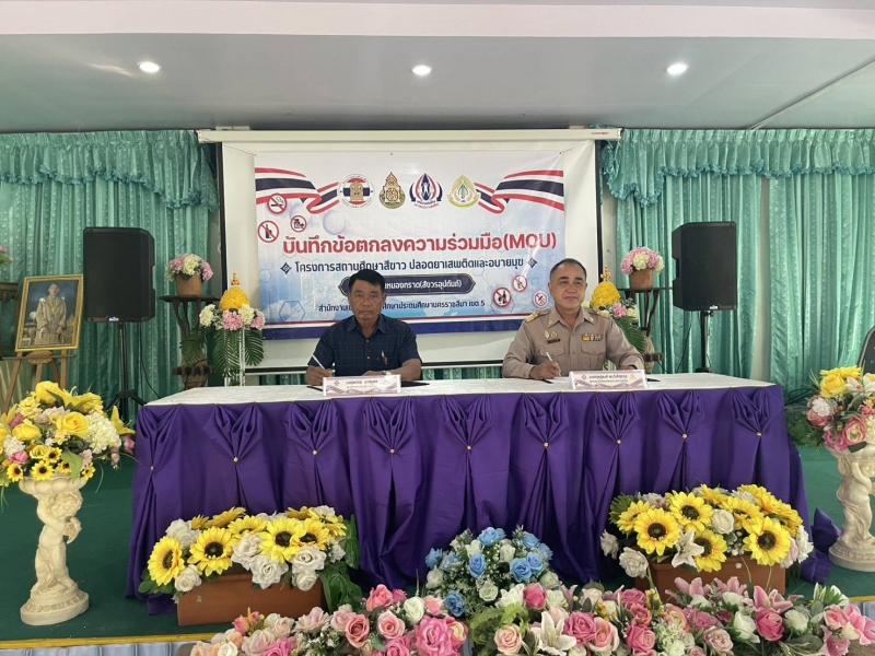 วันที่ 16 กุมภาพันธ์ 2569 นายวีระชัย โต้งสูงเนิน นายกเทศมนตรีตำบลหนองกราด พร้อมด้วย นายประจักษ์ หงษ์ศรีอาภัย รองนายกเทศมนตรีตำบลหนองกราด เข้าร่วมพิธีลงนามบันทึกข้อตกลงความร่วมมือ (MOU) โครงการสถานศึกษาสีขาว ปลอดยาเสพติดและอบายมุข ประจำปีการศึกษา 2568 ร่วมกับภาคีเครือข่าย ได้แก่ คณะกรรมการสถานศึกษาขั้นพื้นฐาน สำนักงานเทศบาลตำบลหนองกราด วัดหนองกราด โรงพยาบาลส่งเสริมสุขภาพตำบลหนองกราด โรงเรียนบ้านถนนหักใหญ่ โรงรียนบ้านใหม่ชัยพฤกษ์ โรงเรียนบ้านหนองแหน ณ โรงเรียนวัดหนองกราด (สังวรอุปถัมภ์) เขตเทศบาลตำบลหนองกราด อำเภอด่านขุนทด จังหวัดนครราชสีมา