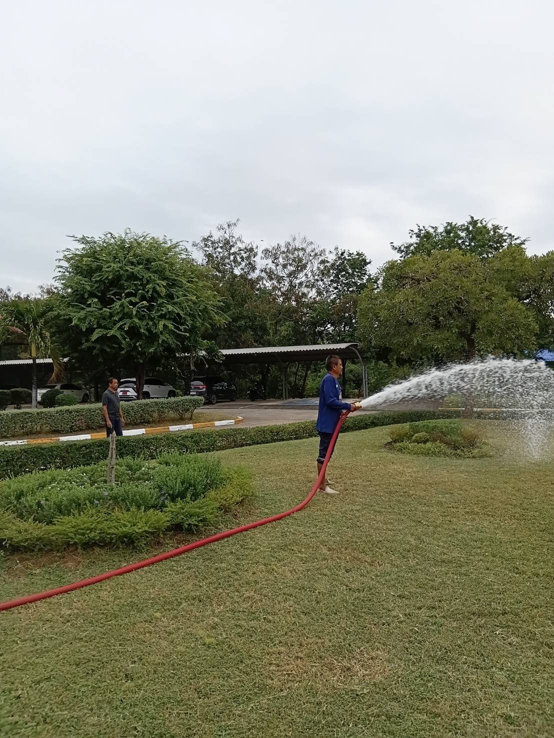 รดน้ำต้นไม้บริเวณโดยรอบเทศบานตำบลหนองกราด