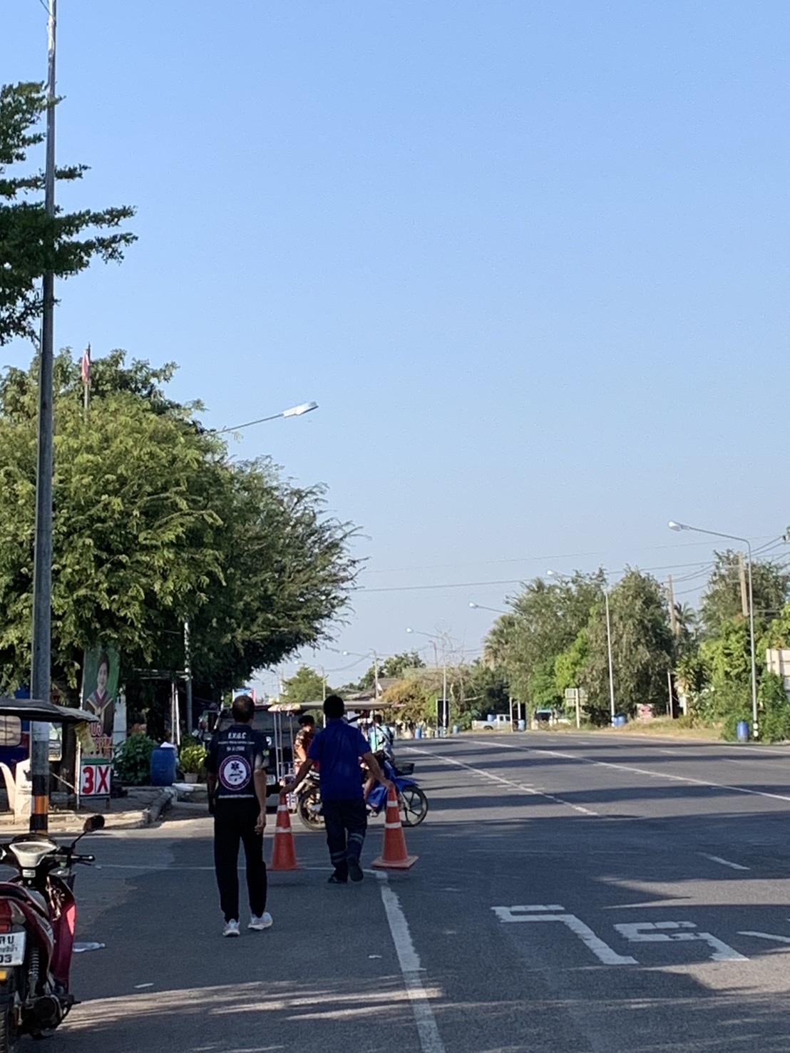 ดำเนินการตั้งกรวยจราจร เพื่อแบ่งช่องจราจรให้กับผู้...