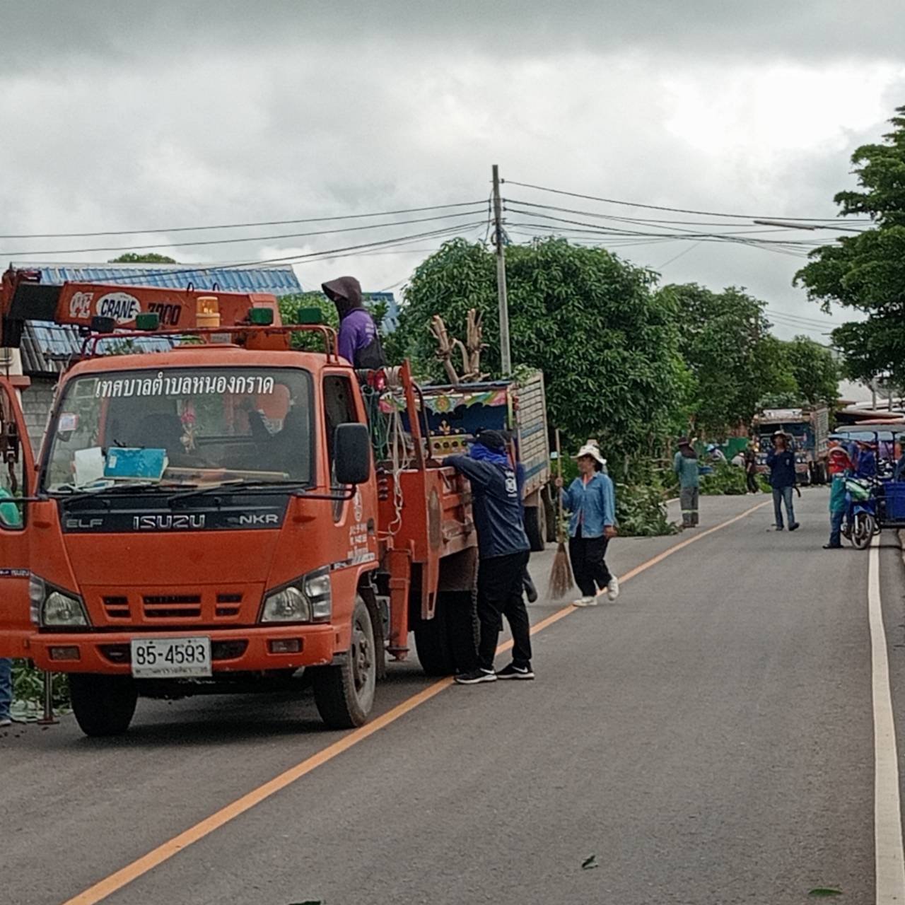 วันที่ 15 ตุลาคม 2568 คณะผู้บริหาร สมาชิกสภาเทศบาลตำบลหนองกราด เจ้าหน้าที่กองสาธารณสุขและสิ่งแวดล้อม เจ้าหน้าที่กองช่าง เจ้าหน้าที่งานป้องกันและบรรเทาสาธา่รณภัย สำนักปลัดเทศบาล และพี่น้องประชาชนจิตอาสาในเขตเทศบาลตำบลหนองกราด ร่วมกันตัดต้นไม้ กิ่งไม้ที่ปกคลุมถนน และซอยต่างๆ เพื่อความสะอาดและความเป็นระเบียบเรียบร้อยของบ้านเมือง big cleaning day บ้านสุขสันต์ หมู่ที่ 14 ตำบลหนองกราด อำเภอด่านขุนทด จังหวัดนครราชสีมา