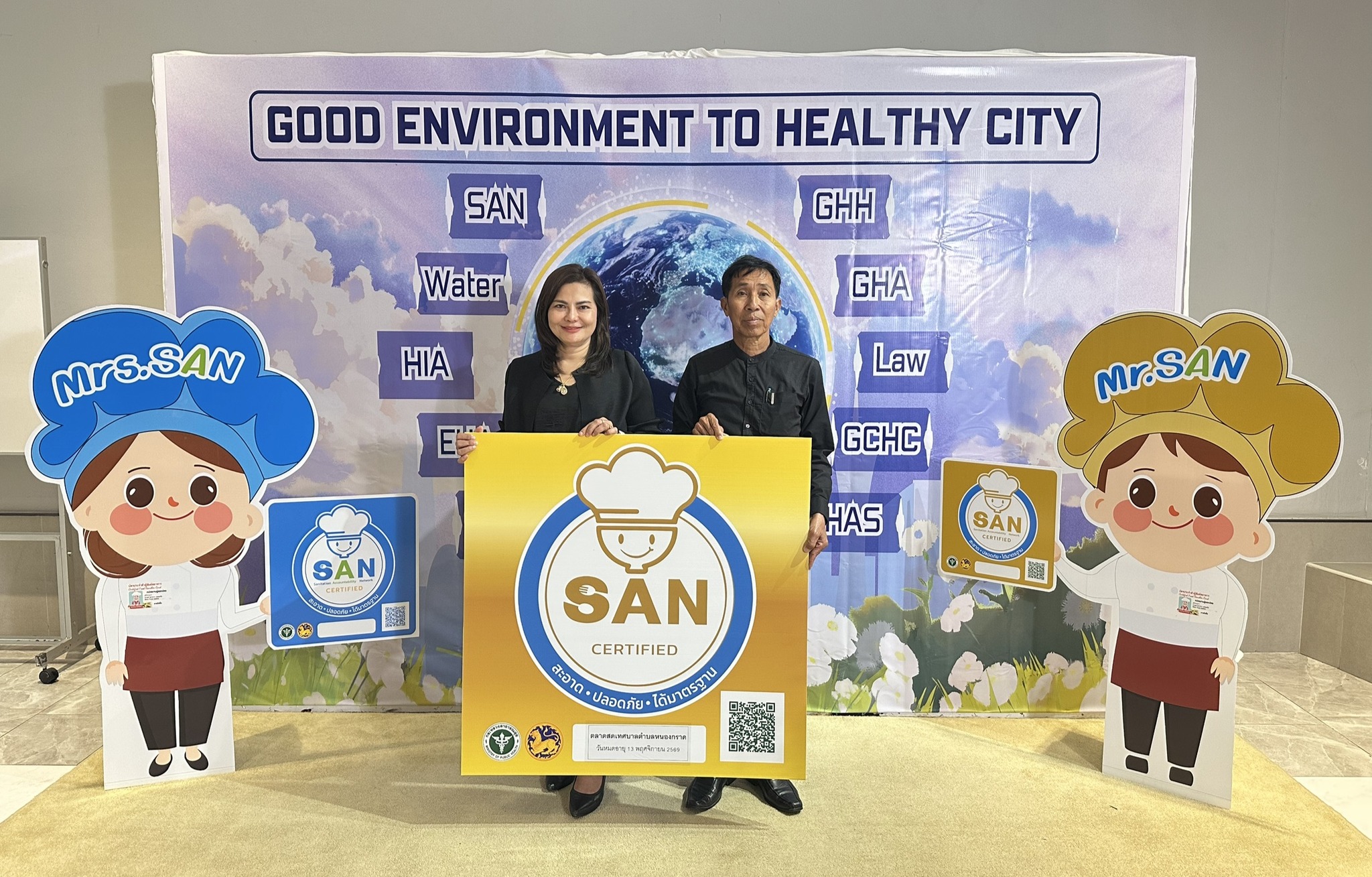 วันที่ 13 พฤศจิกายน 68 เวลา 13.30 น. เทศบาลตำบลหนองกราดได้เดินทางมา ร่วมพิธีประชุมเชิงปฏิบัติการพัฒนาศักยภาพ เครือข่ายด้านการจัดการอนามัยสิ่งแวดล้อมฯ และได้รับรางวัลเครือข่ายต้นแบบด้านอนามัยสิ่งแวดล้อม นครชัยบุรินทร์ โดยเทศบาลตำบลหนองกราดได้รับรางวัล มาตรฐานสุขาภิบาลอาหาร (SAN PLUS) โดย นายวีระชัย โต้งสูงเนิน นายกเทศมนตรีตำบลหนองกราด มอบหมายให้ นายประจักษ์ หงษ์ศรีอาภัย รองนายกเทศมนตรีตำบลหนองกราด เข้ารับรางวัล พร้อมด้วย นางสาวสาวิตรี ทั่งพรม หัวหน้าฝ่ายบริบริหารงานทั่วไป รักษาราชการแทน ผู้อำนวยการกองสาธารณสุขและสิ่งแวดล้อม และ นายอภิสิทธิ์ จะชาลี เจ้าพนักงานธุรการปฎิบัติงาน ณ โรงแรมเซนเตอร์พอยต์ เทอรมินอล 21 อำเภอเมืองนครราชสีมา จังหวัดนครราชสีมา