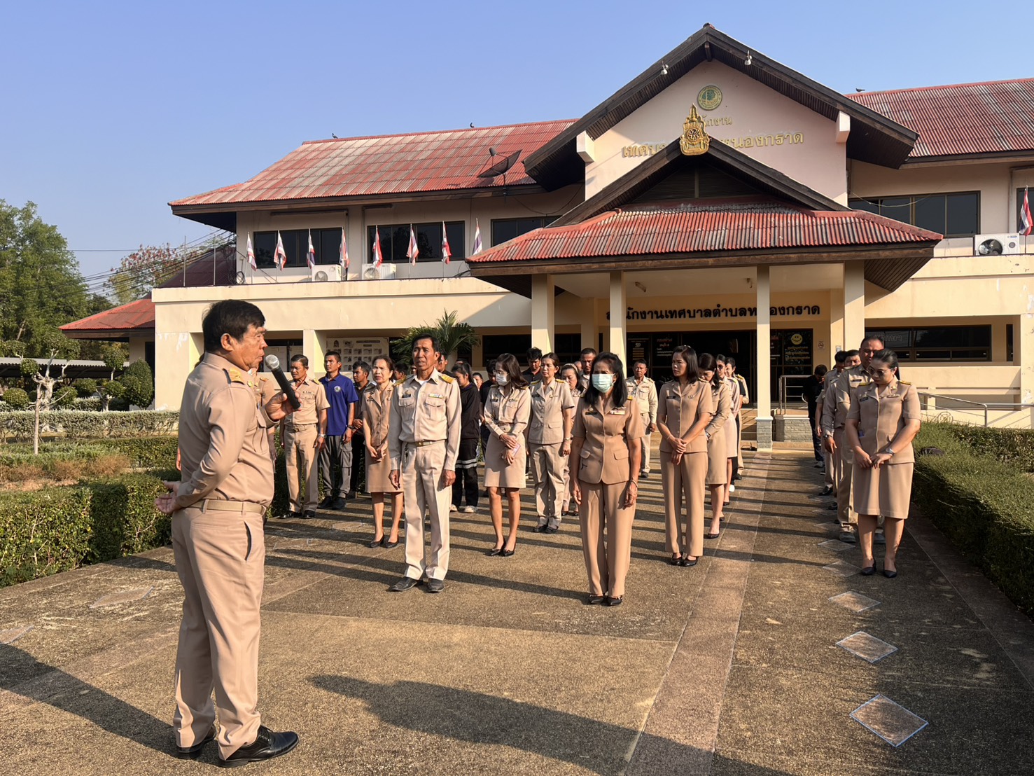 วันจันทร์ที่ 16 กุมภาพันธ์ 2569 เวลา 08.30 น. นายวีระชัย โต้งสูงเนิน นายกเทศมนตรีตำบลหนองกราด พร้อมด้วยคณะผู้บริหาร นายฐานะ มาศขุนทด ปลัดเทศบาลตำบลหนองกราด พนักงานเทศบาล และลูกจ้างของเทศบาลตำบลหนองกราด ร่วมกิจกรรมเคารพธงชาติ ทุกวันจันทร์ เพื่อเป็นการเสริมสร้างวัฒนธรรมและค่านิยมสุจริตในการปฏิบัติงาน ให้มีคุณธรรมจริยธรรม ความโปร่งใส ป้องกันการทุจริตคอร์รัปชั่น และปลูกฝัง รักชาติ ศาสนา พระมหากษัตริย์ ระเบียบวินัยในองค์กร ณ หน้าสำนักงานเทศบาลตำบลหนองกราด