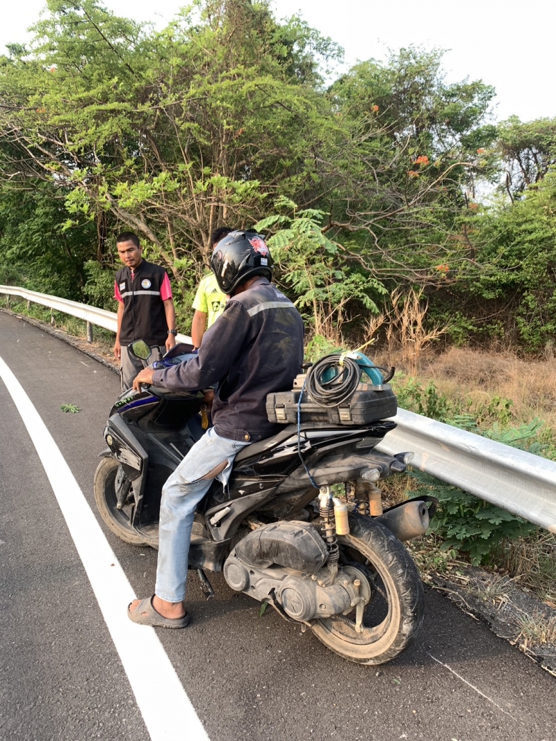 วันที่ 23 เมษายน 2569 เวลา 07.00 น. ได้รับแจ้งจาก สถานีตำรวจภูธรอำเภอด่านขุนท มีอุบัติเหตุรถจักรยานยนต์ชนราวเหล็กกั้นทางโค้งถนนเส้นหนองกราด -บำเหน็จณรงค์ จึงขออนุญาตผู้บังคับบัญชาออกปฏิบัติหน้าที มีถึงสถานที่เกิดเหตุ ได้พบผู้ประสบเหตุจริง จึงได้ทำการปฐมพยาบาลเบื้องต้น และไม่ประสงค์ไปโรงพยาบาล