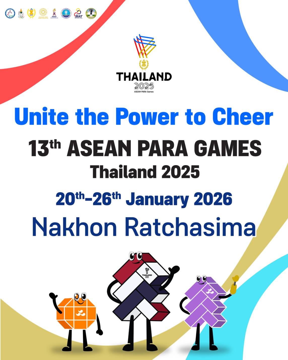 ประชาสัมพันธ์การแข่งขันกีฬาอาเซียนพาราเกมส์ ครั้งที่ 13 พ.ศ. 2568 (ค.ศ. 2025) ระหว่างวันที่ 20-26 มกราคม 2569 ณ จังหวัดนครราชสีมา